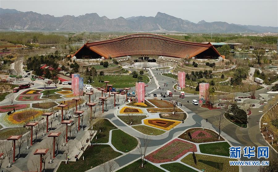 空中俯瞰北京世园会中国馆(4月18日无人机拍摄)。 新华社记者 王毓国 摄
