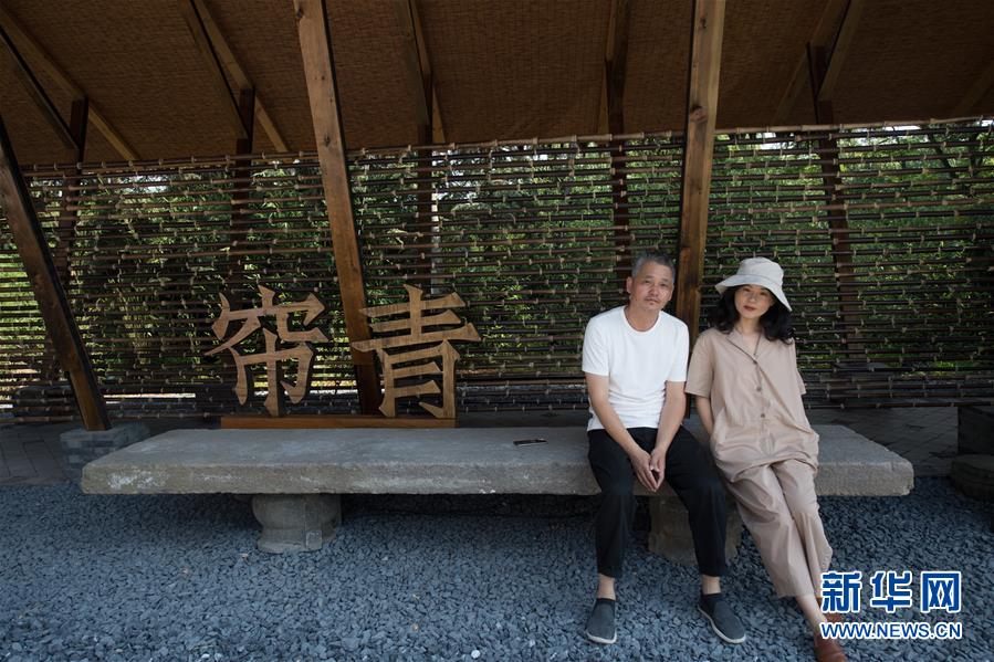 6月4日,陈谷(左)和夫人王齐在“小瘾·半日村”自己经营的一家民宿前留影。新华社记者翁忻旸摄