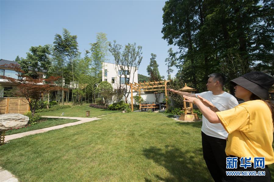 6月4日,陈谷(左)在“小瘾·半日村”跟一位民宿主讨论民宿布置。新华社记者翁忻旸摄