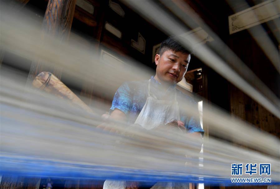 6月5日,在江西省宜春市万载县万载古城,一位手工匠人在展示传统夏布制作技艺。 新华社记者 彭昭之 摄