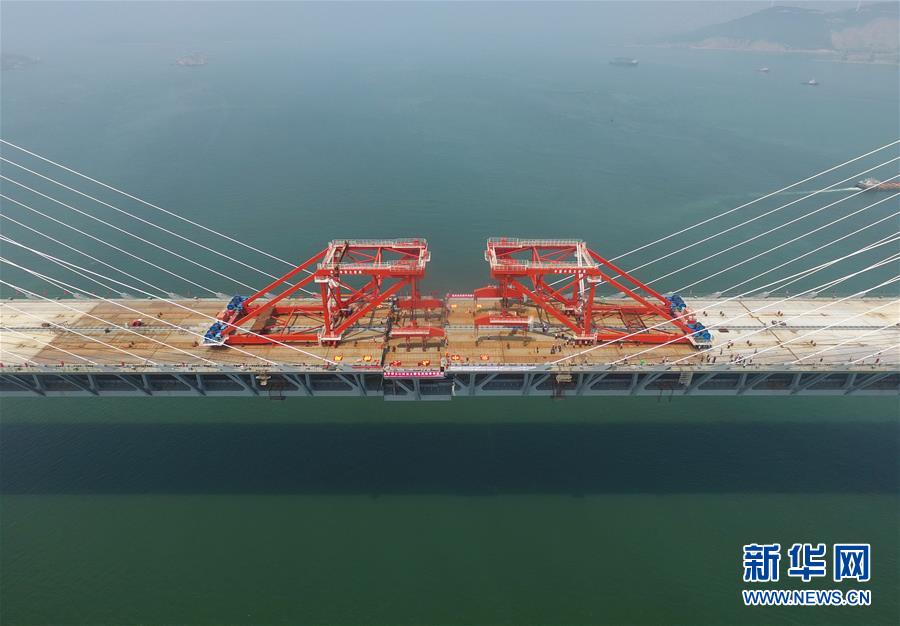 福平铁路平潭海峡公铁两用大桥元洪航道桥主桥正在合龙(6月5日摄)。 新华社记者 林善传 摄