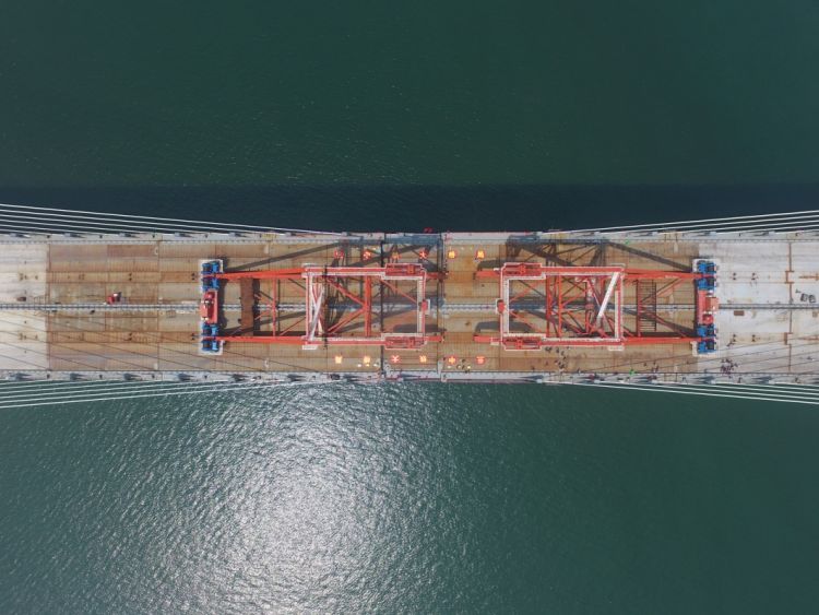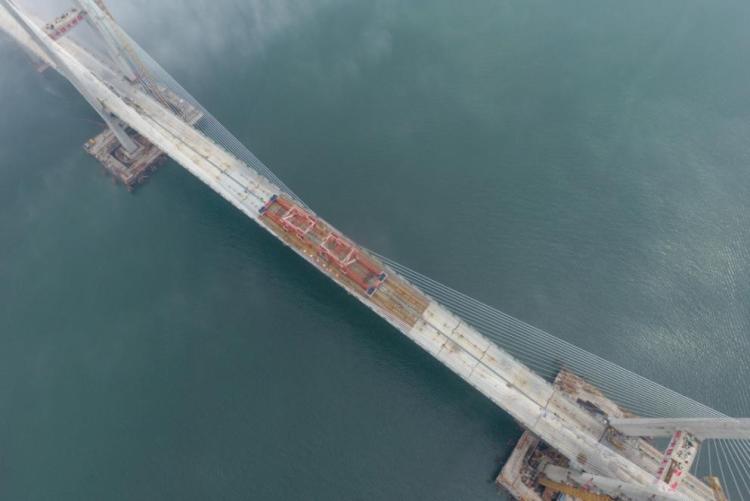 6月5日,福平铁路平潭海峡公铁两用大桥元洪航道桥主桥成功合龙。(新华社记者林善传 摄)