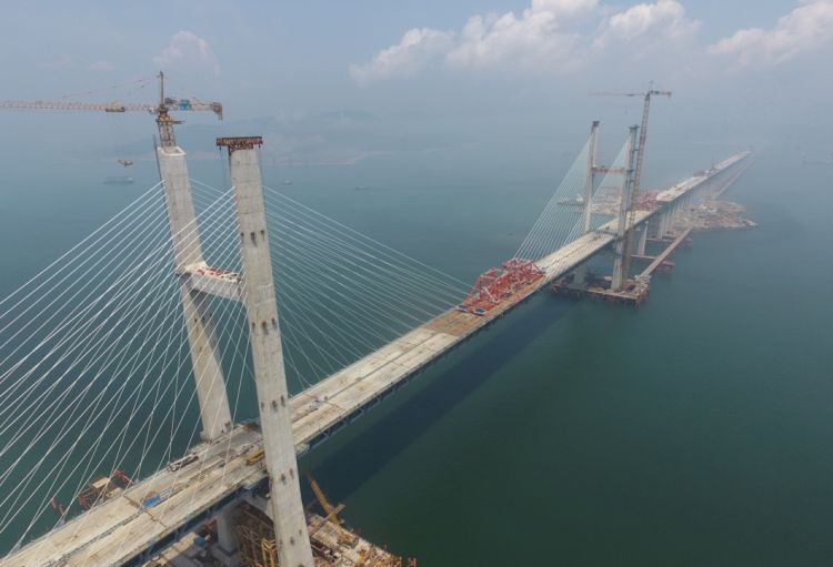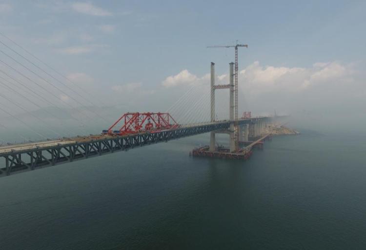 6月5日,施工中的福平铁路平潭海峡公铁两用大桥(新华社记者林善传 摄)