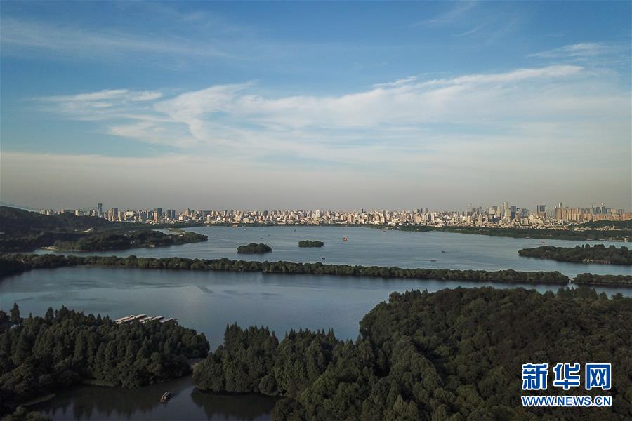 2019年5月24日无人机拍摄的杭州西湖景区与城市建筑群。
