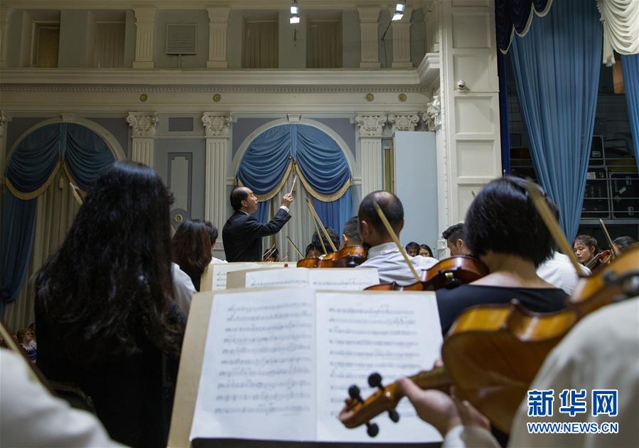 2016年7月6日,中国爱乐乐团、中央少年广播合唱团与俄罗斯伊尔库茨克州交响乐团在俄罗斯伊尔库茨克联合举办了一场彰显中俄友谊的高规格音乐会,这是中国爱乐乐团在音乐会上演奏。 新华社记者 白雪骐 摄