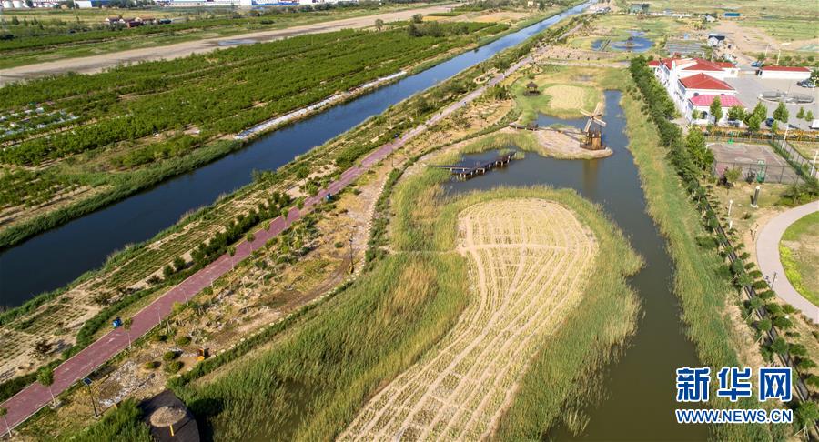 河北省黄骅市一处湿地景观(6月6日无人机拍摄)。 近年来,地处渤海之滨的河北省黄骅市在城市建设中秉持自然、生态、节约理念,通过“引湿地入园”,依势就形对旧有坑塘加以扩挖、改造,形成了盐碱地上独特的城市风景,全市1600亩湿地型园林景观成为市民休闲娱乐的好去处。 新华社记者 牟宇 摄