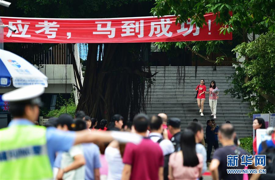 6月7日,考生家长在福建福州三中考点门口等待。 当日,2019年高考拉开帷幕。 新华社记者 魏培全 摄