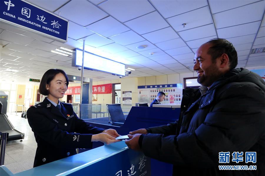 6月6日,民警在新疆卡拉苏口岸联检大厅检查旅客证件。 卡拉苏口岸是中国与塔吉克斯坦两国间开放的唯一陆路口岸,海拔4000多米,目前每年通关旅客1.5万余人、车辆1.2万辆,货物价值超过10亿美元。 新华社发 (黄欢 摄)