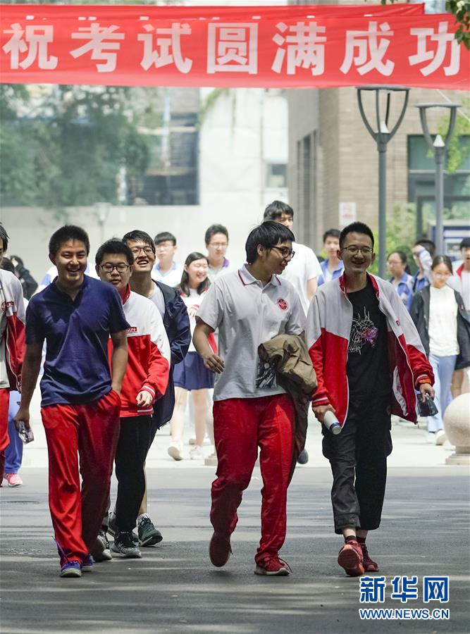 6月7日,在北京大学附属中学考点,考生在上午考试结束后走出考场。 当日,2019年高考拉开帷幕。 新华社记者 沈伯韩 摄