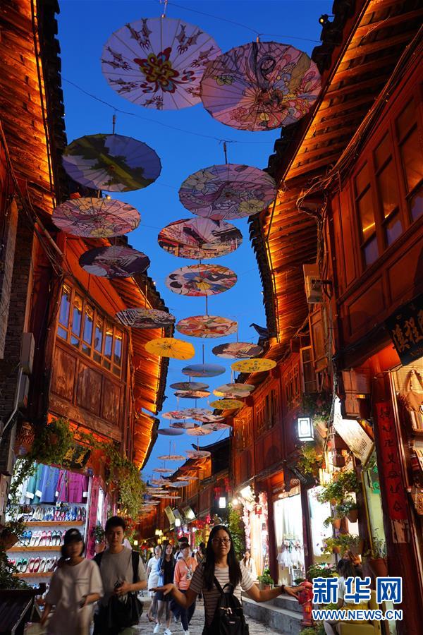 夜色中的云南丽江古城,灯光璀璨,油纸伞古街散发迷人魅力(6月6日摄)。 在夜色中的世界文化遗产云南丽江古城灯光璀璨,越夜越美丽。 新华社记者 秦晴 摄