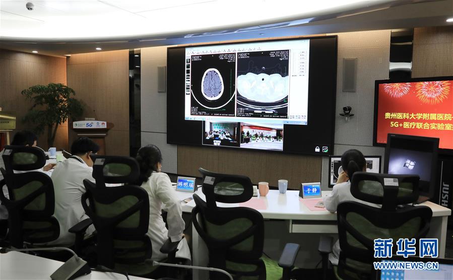 4月10日,贵州医科大学附属医院联合长顺县人民医院及中日友好医院进行首次5G远程多学科会诊。 新华社发 (卢志佳摄)