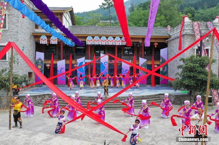 四川北川羌族民众载歌载舞欢庆瓦尔俄足节