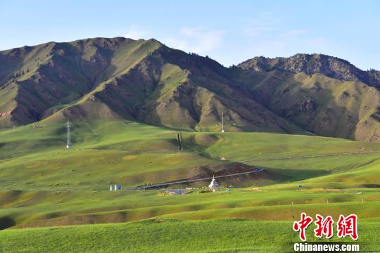 六月初,甘肃张掖市肃南裕固族自治县,祁连山顶银装素裹,山下草原千里花开、万里绿海。草原、白云、牛羊群、雪山、牧民和冒着炊烟的帐篷构成了美丽的画卷。
