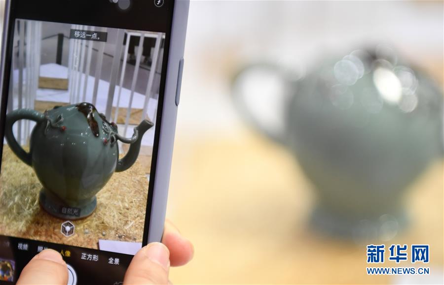 6月8日,观众在拍摄展出的龙泉青瓷器物。新华社记者 邓华 摄