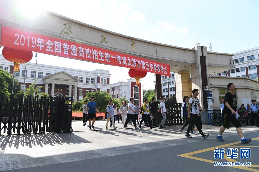 6月8日,在山西省太原市第五中学校考点,考生走出考场。 当日,全国部分地区2019年高考结束。 新华社记者 杨晨光 摄