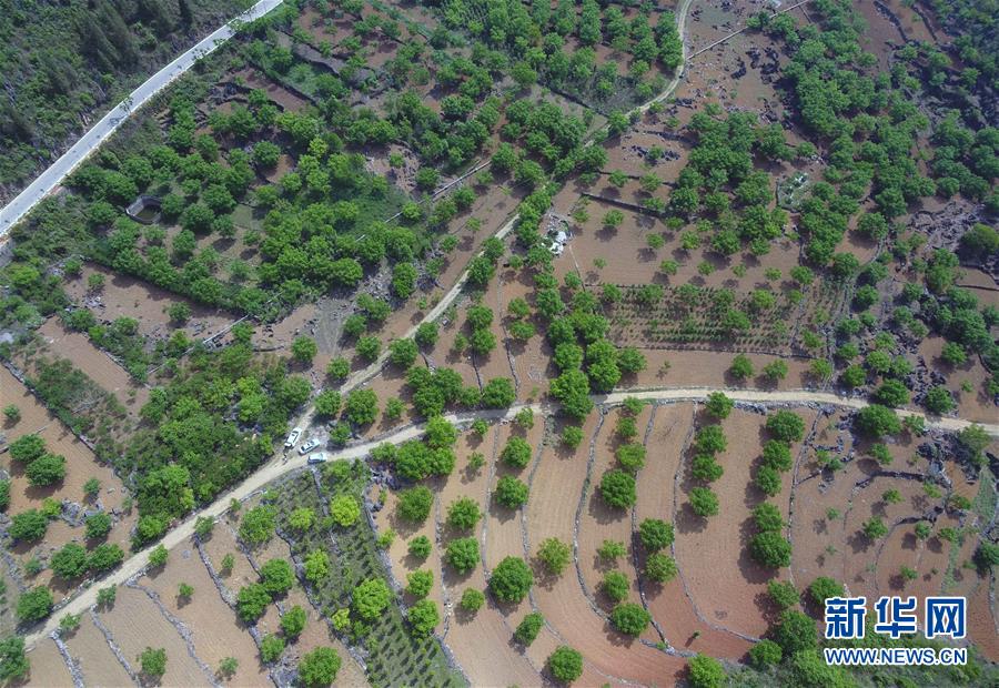 这是无人机拍摄的云南西畴县蚌谷乡木者村的果园(4月17日摄)。新华社记者 杨宗友 摄