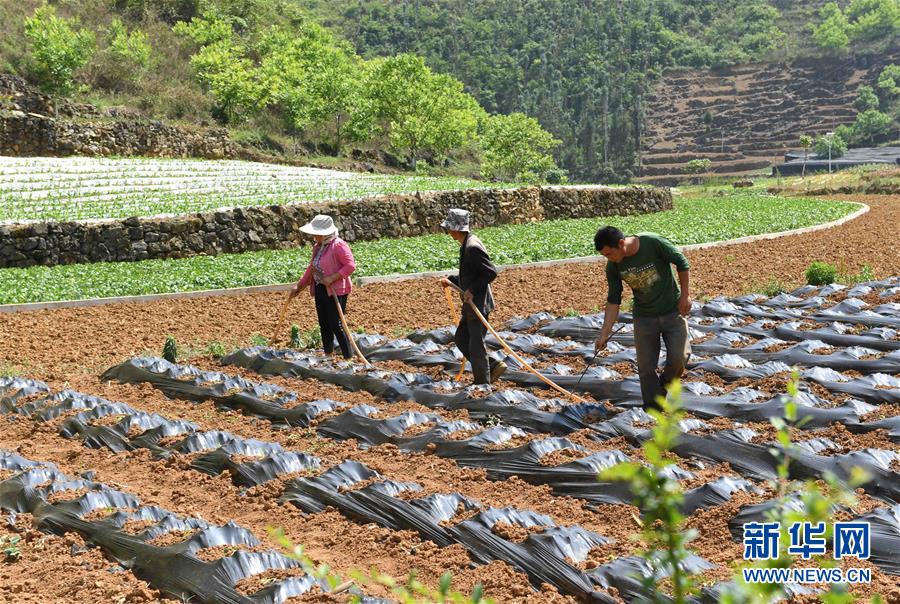 云南西畴县蚌谷乡龙正村农民在管理种植的经济作物(4月17日摄)。 新华社记者 杨宗友 摄