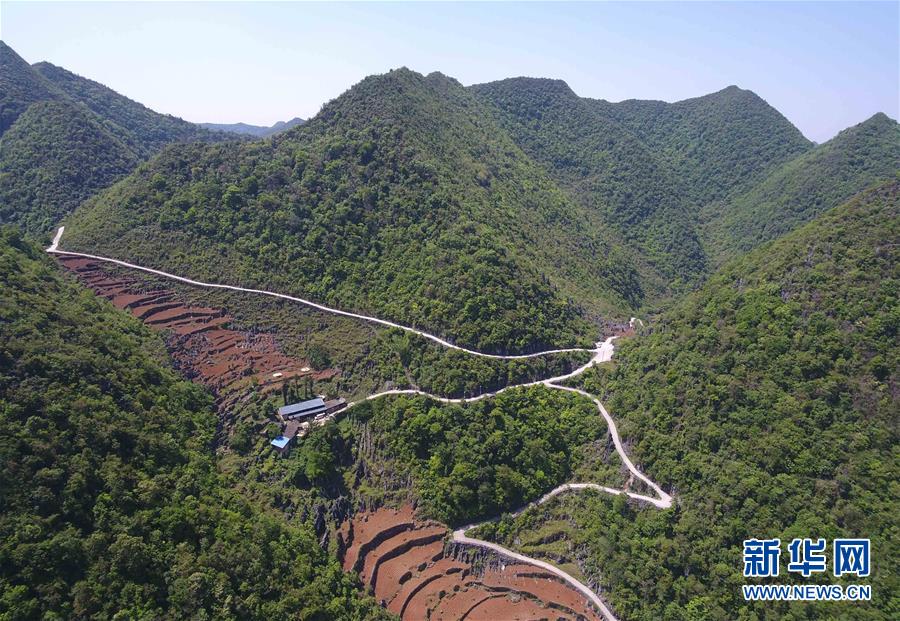 这是无人机拍摄的云南西畴县鸡街乡肖家塘村新修通的盘山公路(4月19日摄)。新华社记者 杨宗友 摄