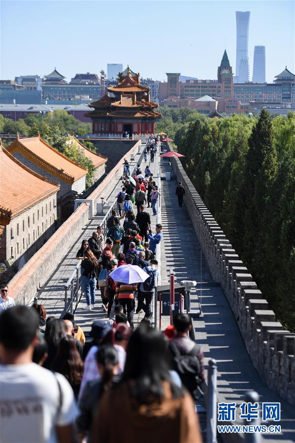 游客在北京故宫南城墙上参观(2018年10月7日摄)。 新华社记者 陈晔华 摄