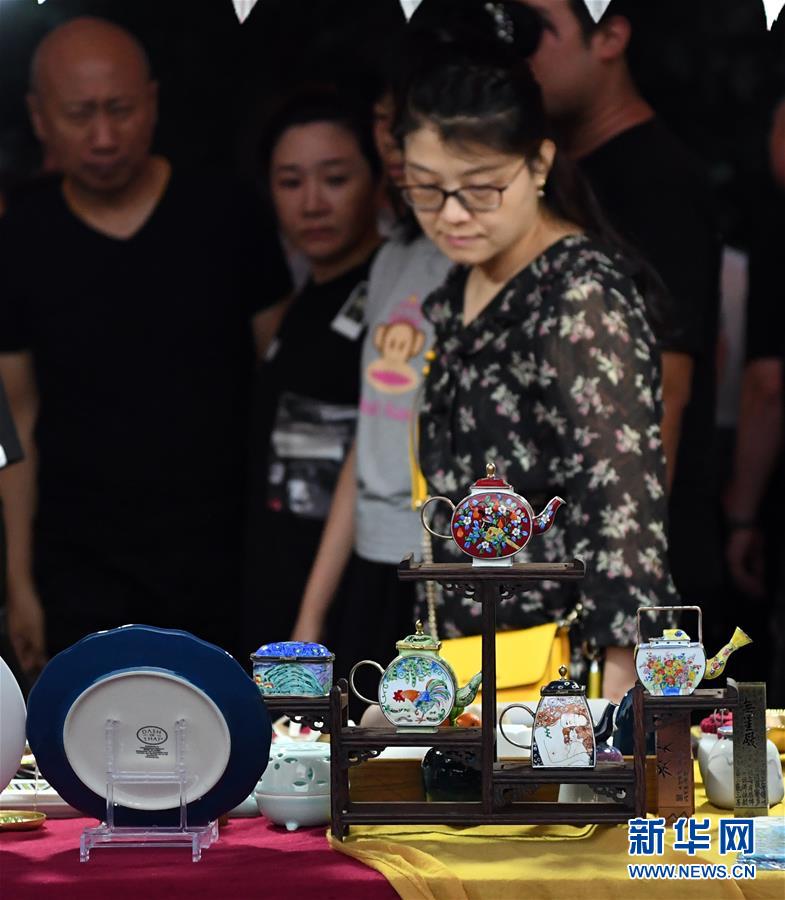 6月9日,在天津市五大道夜间经济示范街区,市民欣赏摊位摆放的创意瓷器。新华社记者 马平 摄