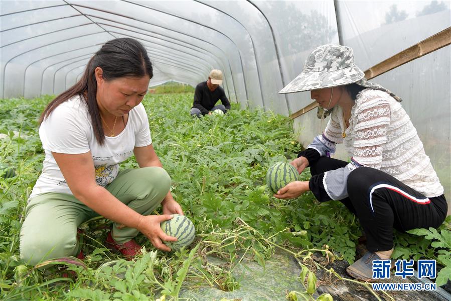6月10日,在江西省永新县莲洲乡土田村,瓜农在洪水退去后进入瓜棚采摘西瓜。 6月10日,江西省吉安市永新县境内开始停雨转阴。由于之前强降雨导致的洪涝灾害毁了不少农田及作物,目前永新县各乡镇正积极组织开展灾后自救。 新华社记者 彭昭之 摄