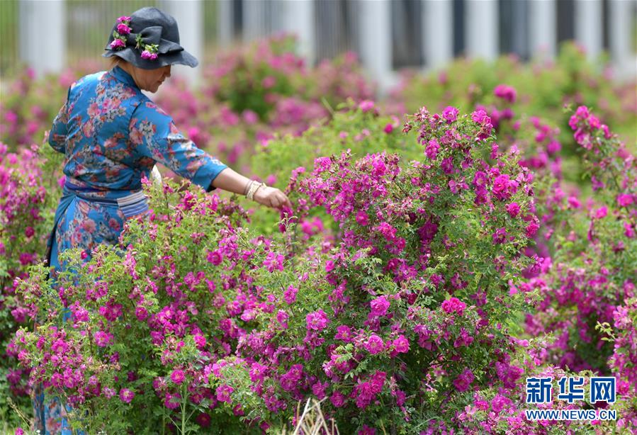 一名游客在拉萨市达孜区现代农业产业园玫瑰种植基地采摘玫瑰(6月9日摄)。 近日,在西藏拉萨市达孜区现代农业产业园,由西藏玫瑰生物科技发展有限公司种植的200亩玫瑰盛开,吸引众多游客前来观赏采摘。 新华社记者 张汝锋 摄
