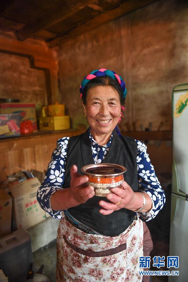 西藏昌都市芒康县纳西民族乡村民在展示自家酿造的葡萄酒(6月3日摄)。 从陶瓷大缸里舀上一碗碗红酒,端到来客面前双手敬上,如同藏家农民为客人斟上青稞酒一般,这是西藏昌都市芒康县纳西民族乡百姓的待客之道。 红酒是当地一种“土特产”,家家户户基本都会酿制,采用传统自然发酵方法。 当地百姓酿制红酒的历史,可追溯至19世纪。芒康县将葡萄酒作为重点产业予以扶持,已建成万亩葡萄基地。这也带动了当地群众种植葡萄的积极性,成为群众重要的现金收入来源。 新华社记者 晋美多吉 摄