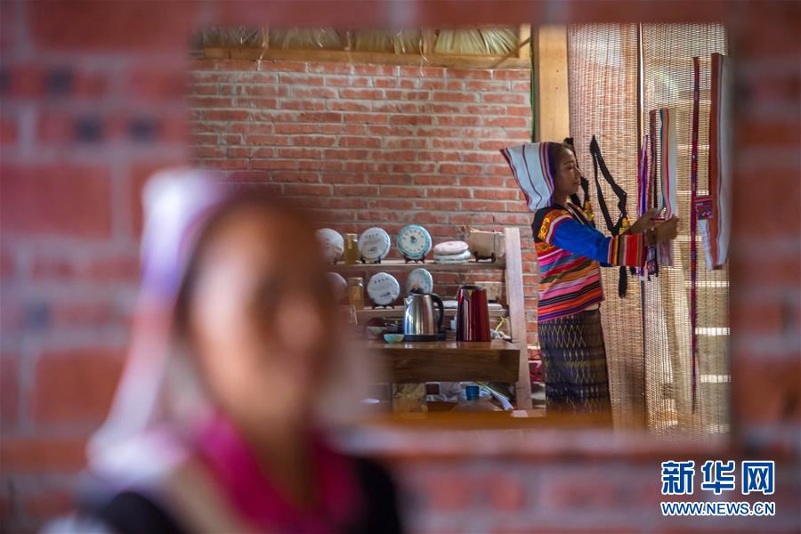6月10日,姿梅(右)在整理出售的传统手工织物。 基诺族妇女姿梅是云南省景洪市基诺山基诺族乡巴飘村村民。近年来,在国家扶贫政策的带动下,她和家人积极从事乡村民宿旅游,出售生态茶叶、野生蜂蜜和传统民族织物等,经济条件明显改善。基诺族是新中国成立后从原始社会末期直接过渡到社会主义社会的“直过民族”,1979年6月被国务院正式确认为单一民族。 新华社记者胡超摄