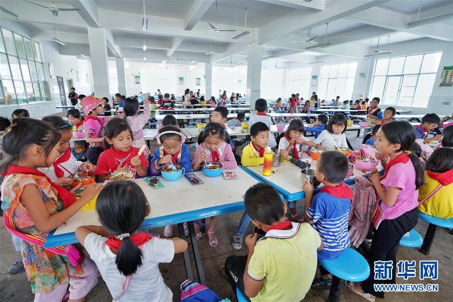 6月11日,云南西双版纳基诺山基诺族乡民族小学的学生在吃营养午餐。新华社记者 秦晴 摄