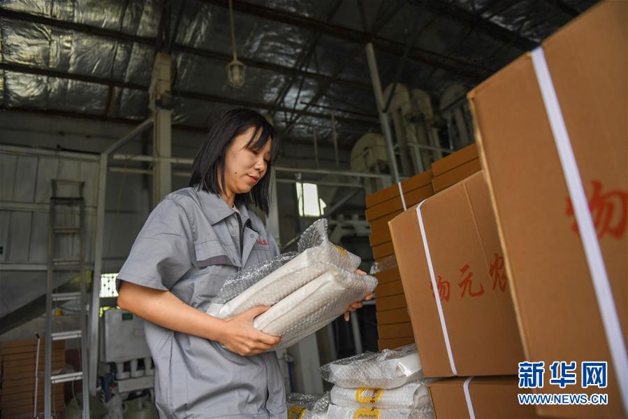 5月30日,陆晓泉搬运包装好的大米。新华社记者 张楠摄