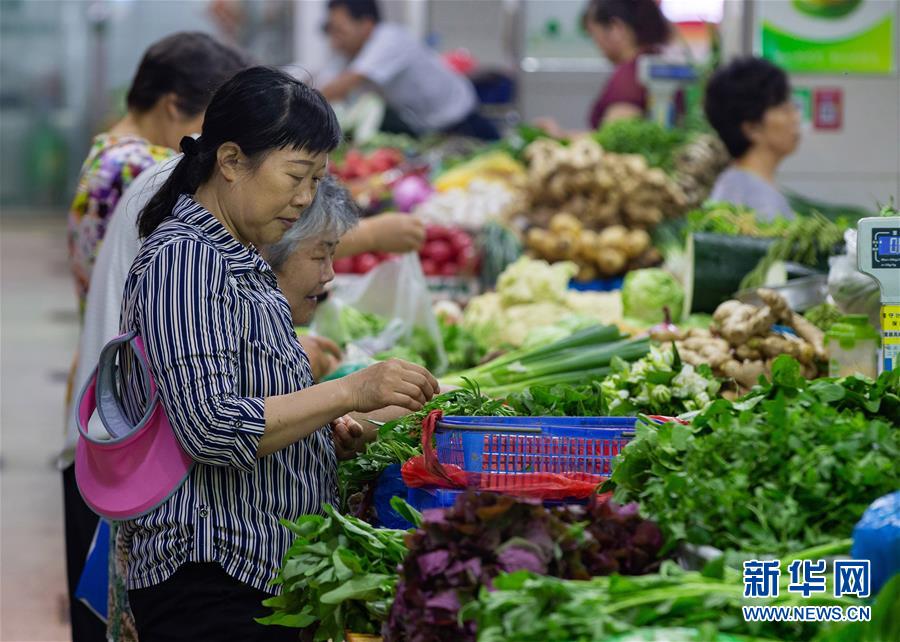 6月12日,顾客在江苏南京一家集贸市场购买蔬菜。新华社发(苏阳 摄)