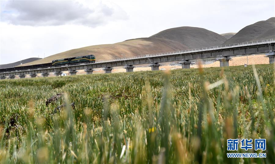 列车行驶在青藏铁路上(6月10日摄)。 新华社记者 觉果 摄