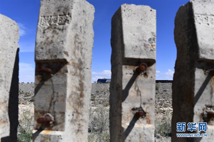 一列火车行驶在青海省海西蒙古族藏族自治州德令哈市境内的青藏铁路线上(2018年6月28日摄)。 新华社记者张宏祥摄