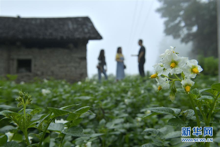 6月12日,游客在湖北省宣恩县珠山镇狮子关村游玩。 新华社发(宋文 摄)