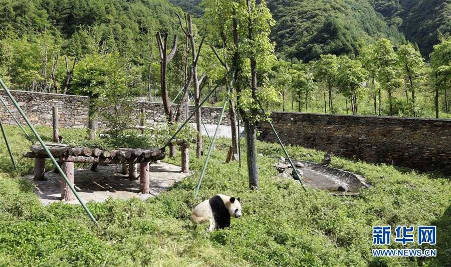 6月12日,“萌萌”在中国大熊猫保护研究中心卧龙神树坪基地。 2018年12月底,广州长隆全球唯一大熊猫三胞胎中的姐姐“萌萌”出现发情迹象,于是被送回到中国大熊猫保护研究中心卧龙神树坪基地进行配对。 经过适应和调养后,“萌萌”5月15日达到发情高潮期,并与一雄性大熊猫成功交配。 中国大熊猫保护研究中心卧龙神树坪基地海拔1700多米,这里气候清凉,天然环境非常适合大熊猫繁育,而且在种源上有更大的选择、更有利于提高大熊猫的繁育成功率。 新华社记者 黄国保 摄