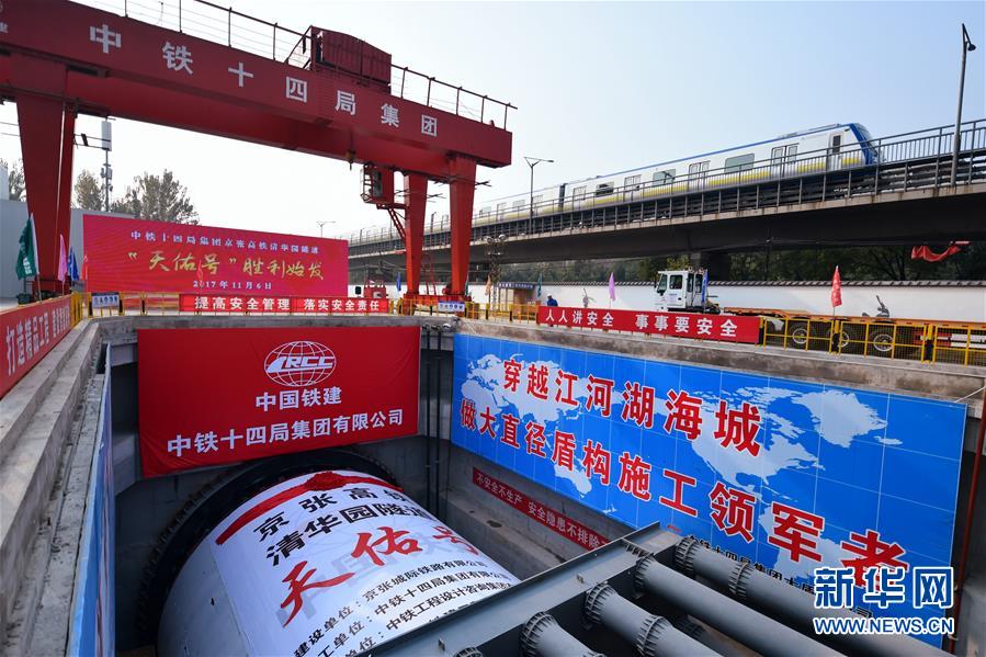 京张高铁清华园隧道“天佑号”盾构机始发掘进(2017年11月6日摄)。