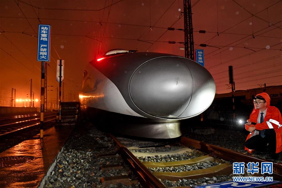 6月12日,福州动车段随车机械师对动车组进行开行前检查。 进入夏季,我国南方进入主汛期。福州动车段实时跟踪雨情,加强列车检查,全力做好设备维护,确保列车安全运行。 新华社记者 张国俊 摄