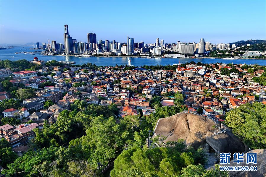从鼓浪屿远望厦门岛(2017年8月31日摄)。 新华社记者 张国俊 摄