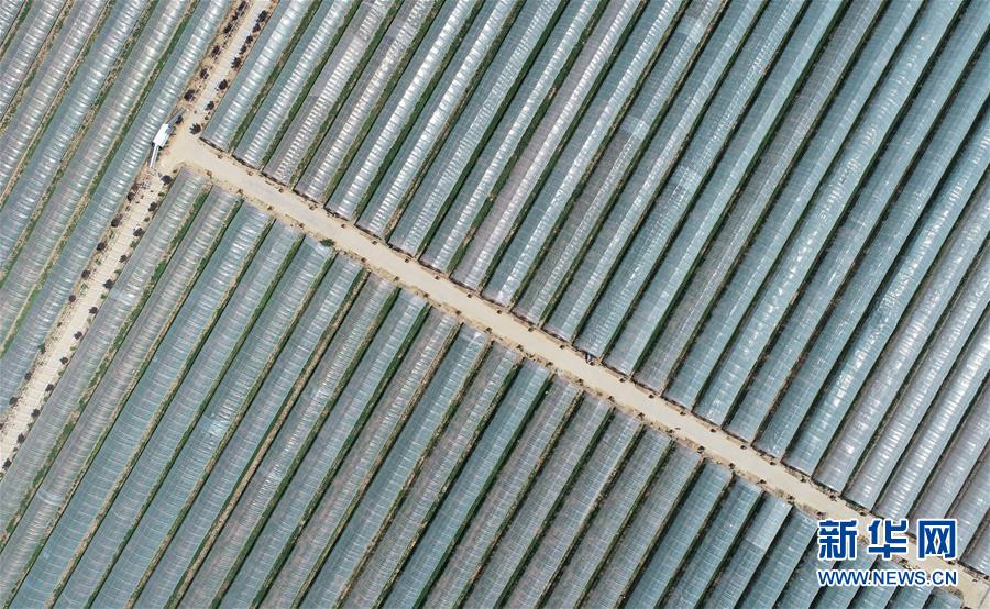 这是6月13日无人机拍摄的合阳县丰阜现代农业园区的果蔬大棚。 近年来,陕西省渭南市合阳县积极引导农民发展特色果蔬设施农业,推进农业观光园和生态采摘园建设,有效促进农民增收,成为助力乡村振兴新亮点。 新华社记者 张博文 摄