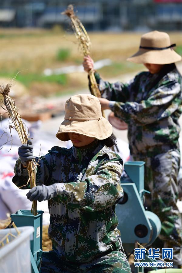 6月13日,西北农林科技大学两名学生在试验田旁给小麦脱粒。 每年三夏期间,在位于陕西杨凌的西北农林科技大学,全校各个院系的大一学生都要与老师一起走进学校的试验田,进行三夏生产实践和农业科研实习。这项活动始于建校之初,从学校农学类专业的学生开始,逐步覆盖到全体学生,如今已成为学校延续80多年的教学传统。 今年夏天,近5000名西北农林科技大学大一学生顶着烈日,分批对小麦进行收割、脱粒,并筛选、记录实验材料,亲身体会在田间地头劳作的辛劳与快乐。 新华社记者 邵瑞 摄