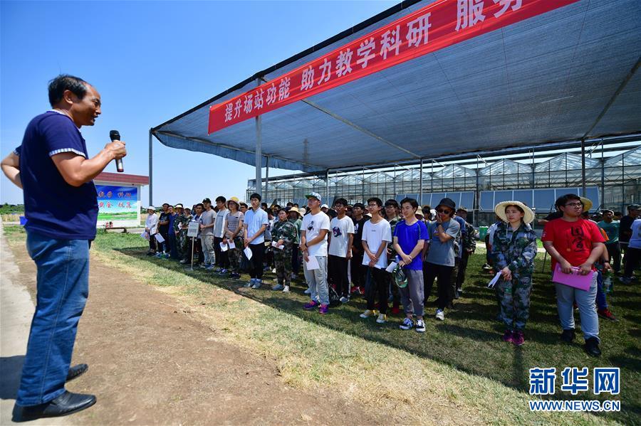 6月13日,西北农林科技大学的老师在给学生们进行田间劳动前的培训。 每年三夏期间,在位于陕西杨凌的西北农林科技大学,全校各个院系的大一学生都要与老师一起走进学校的试验田,进行三夏生产实践和农业科研实习。这项活动始于建校之初,从学校农学类专业的学生开始,逐步覆盖到全体学生,如今已成为学校延续80多年的教学传统。 今年夏天,近5000名西北农林科技大学大一学生顶着烈日,分批对小麦进行收割、脱粒,并筛选、记录实验材料,亲身体会在田间地头劳作的辛劳与快乐。 新华社记者 邵瑞 摄
