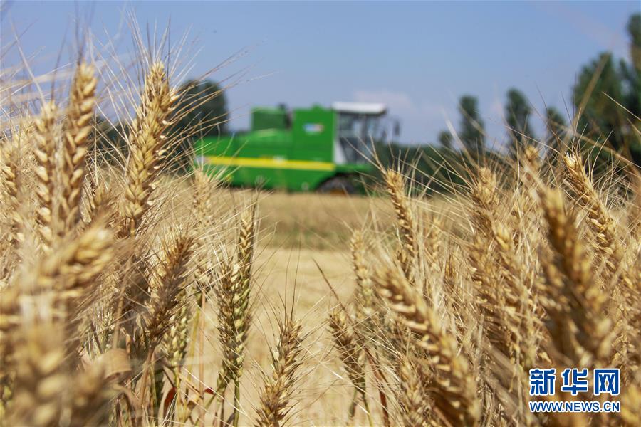 6月14日,河北唐山遵化市东新庄镇后毛庄村农民在收割小麦。 据河北省农业农村厅统计,今年河北小麦播种面积3460.6万亩,适宜机收面积3430万亩,河北小麦机收时间从6月6日开始,预计到6月22日前后结束。 新华社发(刘满仓 摄)