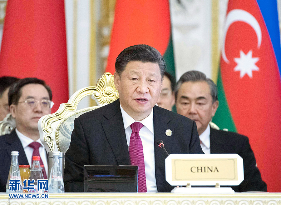 6月15日,亚洲相互协作与信任措施会议第五次峰会在塔吉克斯坦首都杜尚别举行。国家主席习近平出席峰会并发表题为《携手开创亚洲安全和发展新局面》的重要讲话。 新华社记者 李涛 摄
