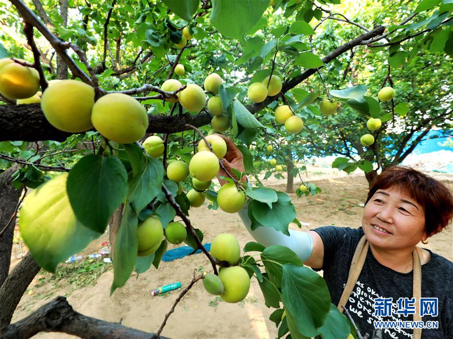 6月15日,河北省巨鹿县西张庄村农民在采摘白杏。新华社记者 牟宇 摄