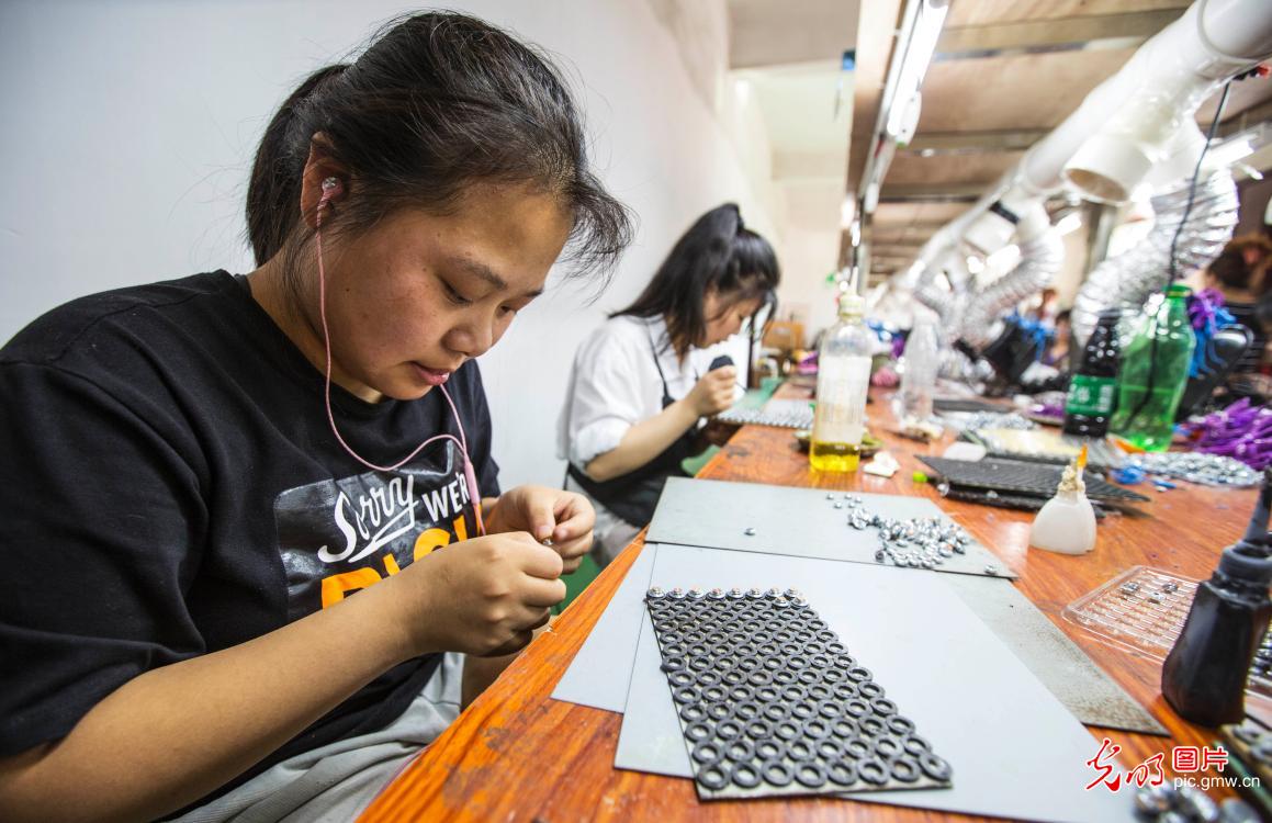 2019年6月16日,江西鹰潭高新区双凤村“扶贫车间”内,工人在劳作。最近,江西鹰潭高新区劳动就业保障局大力推进扶贫产业政策,积极推进“扶贫车间”建设,在吸纳建卡贫困户、低保户等困难群众就业的同时,引导鼓励外出务工人员返乡创业。李江波摄/光明图片(李江波摄/光明图片)