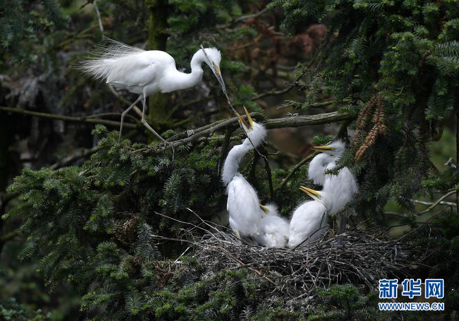 在江西南昌市新建区象山森林公园内,白鹭和它的雏鸟在一起(5月21日摄)。新华社记者 彭昭之 摄