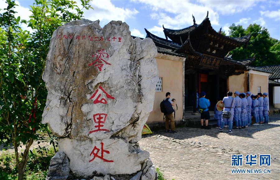 6月17日,记者们列队在红军长征出发地——观寿公祠前听特别党课。新华社记者 魏培全 摄