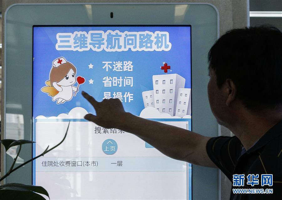 6月17日,市民在北京天坛医院体验三维导航问路机。新华社记者 张玉薇 摄
