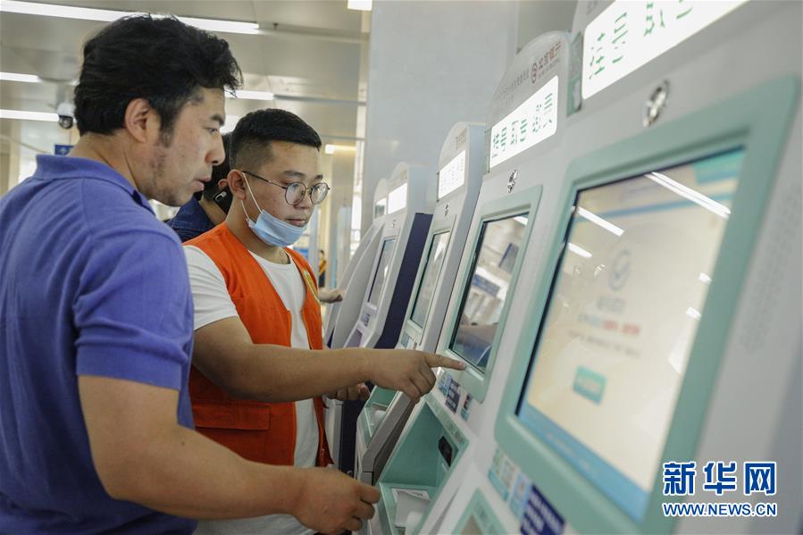 6月17日,北京天坛医院工作人员帮助市民用挂号机挂号。新华社记者 张玉薇 摄