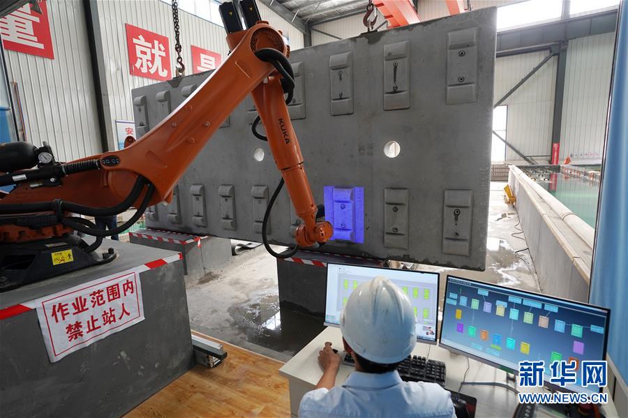 6月17日,一名技术人员通过轨道板自动化检测系统对高铁CRTSⅢ型轨道板进行检测。新华社记者鞠焕宗摄